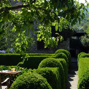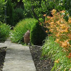Los huéspedes pueden relajarse en un jardín orgánico de la propiedad.
